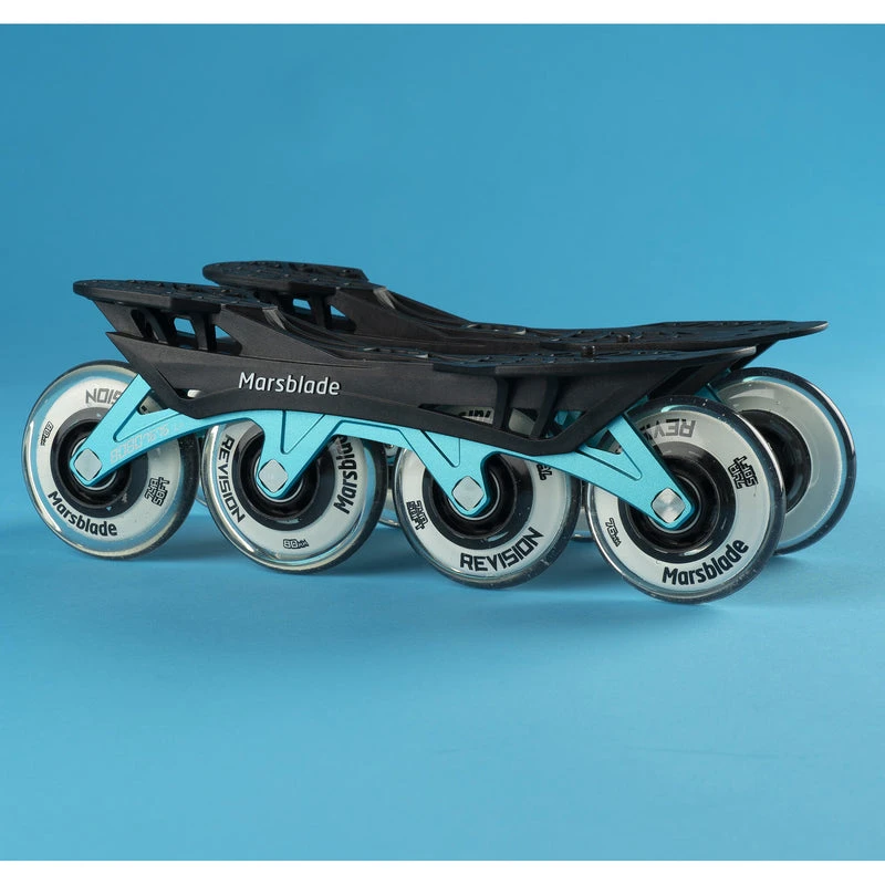 The Marsblade R1 roller hockey chassis powered by the patented Flow Motion Technology – a unique rocker that can be customized to players skating style and improves all aspects of skating, including more power and speed, quicker turns, better grip and control